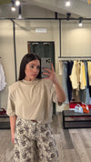 La T-shirt oversize JustWest è realizzata al 95% in viscosa, offrendo una combinazione di comfort e traspirabilità. Le spalline incorporate e le maniche corte garantiscono una vestibilità versatile, adattandosi a taglie che vanno da XS a doppia XL, per un'ampia gamma di silhouette.