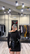 Vestito in lycra effetto corsetto sul davanti con elasticità fino alla taglia 46. Modella la figura e dona una vestibilità comoda e aderente. Perfetto per un look elegante e femminile, ideale per valorizzare ogni silhouette.