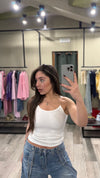 La Canotta Iconic è realizzata in un tessuto elasticizzato che garantisce una vestibilità ottimale fino alla taglia M. Le bretelle invisibili assicurano un look pulito e raffinato, rendendola adatta per l'uso quotidiano e per diverse occasioni, aumentando la versatilità del tuo guardaroba.
