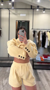 Il Coordinato Leonor comprende una giacca oversize che si adatta fino alla taglia XL e pantaloncini con elastico sul retro, che vestono comodamente fino alla taglia L. Questo design versatile garantisce una vestibilità ottimale e una libertà di movimento, rendendolo ideale per ogni occasione.