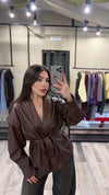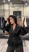 La Giacca Sophia è realizzata in ecopelle, offrendo un'alternativa sostenibile alle giacche tradizionali. Dotata di une fusciacca in vita, questa giacca si adatta a diverse silhouette, vestendo dalla taglia XS alla XL. È una scelta versatile per un look elegante e moderno.