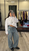 I JEANS AMI presentano un design non elasticizzato con strappi, offrendo una vestibilità regolare. Per un comfort maggiore, si consiglia di scegliere una taglia in più. Questa combinazione garantisce un look moderno e una libertà di movimento ideale per l'uso quotidiano.