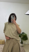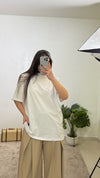 La T-shirt oversize JustWest è realizzata al 95% in viscosa, offrendo una combinazione di comfort e traspirabilità. Le spalline incorporate e le maniche corte garantiscono una vestibilità versatile, adattandosi a taglie che vanno da XS a doppia XL, per un'ampia gamma di silhouette.